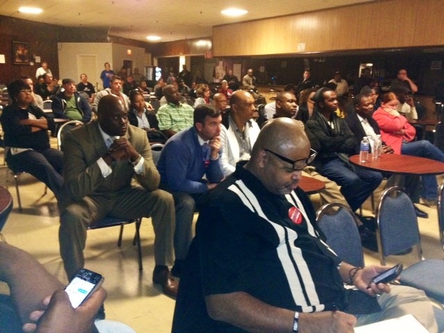 ^ frustrated, but listening : the crowd at Walsh’s Talbot Avenue “conversation.”