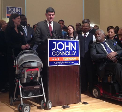 At a time when many people are fed up with elected officials’ inability to keep promises, and when many more no longer believe what an elected official says, having endorsement by elected officials as your big magillah may not be the win-win the endorsee thinks it is. Already Connolly is doing the John Collins move : pointing out in his speeches that, as he said this morning at a rally, “so many politicians have endorsed Marty Walsh I almost expect Barack Obama to endorse him !” (He laughed. So did the entire room.) “All I’ve got,” he continued, are the people !” Saying it as he nodded to the 170 or so leaders and people gathered to support him.