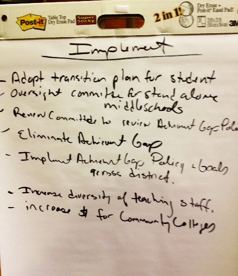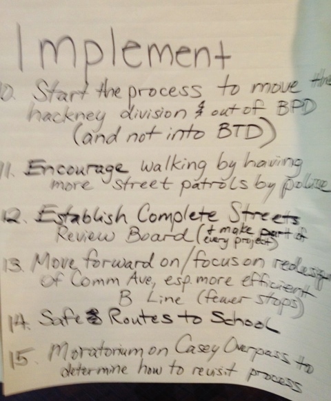 Below — the Transportation/Infrastructure attendees came up with this “Implement” List :