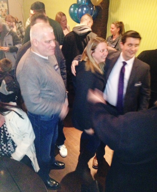 ^ enthusiasm of the Marty Walsh kind : Liam Curran mobbed by supporters at his campaign kick-off at. the Blarney stone last night