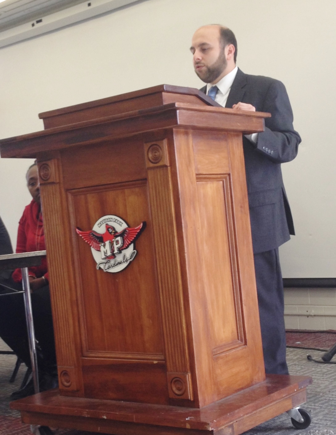 ^ his campaign is picking up and so is his speaking : John K. Toole at last night’s Dorchester Board of Trade event
