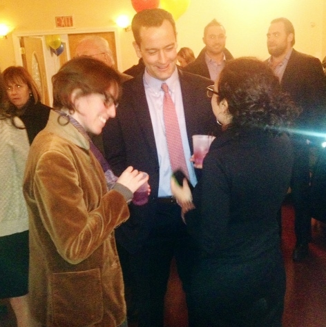 The race grows intense now. Door-knocking has been going on all month, through snow and extreme cold. Nobody is at all tired. If anything, the young people who are doing most of the grunt work are warming to the tasks ahead : house signs, house parties, stand outs, phone calls, meet and greets, more door knocking — after all, they did all this for Marty Walsh, and they have the can-do, will-do feel of confident winners.