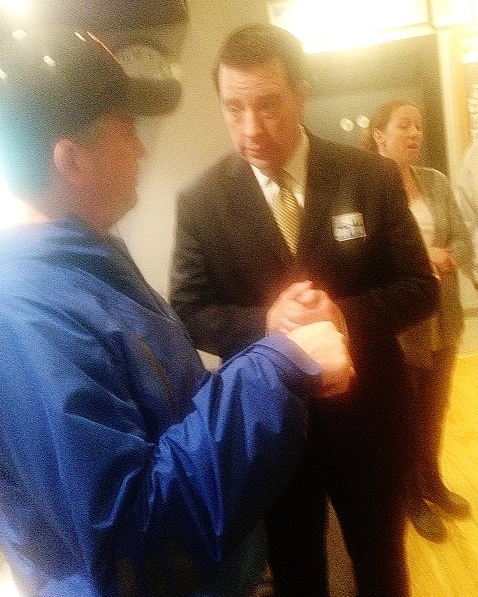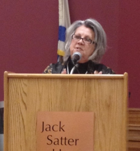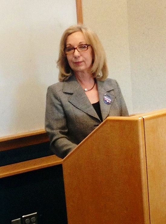 Roselee Vincent presented herself pretty much as already ON the job, so why not just vote to confirm it ? “For 25 years I have worked in the office that I now seek to hold,” she said, citing her service for both Kathi Reinstein — whose resignation to become Boston beer’s PR gal sparked this Special election — and her Dad, Bill Reinstein. Vincent listed her major endorsements too : Revere Mayor Dan Rizzo, School Committee Member Carol Tye, and of course Kathi Reinstein. Much applause confirmed that many in the room already support her; dark blue “Vincent” stick-ons could be seen on many attendees’ shirts.