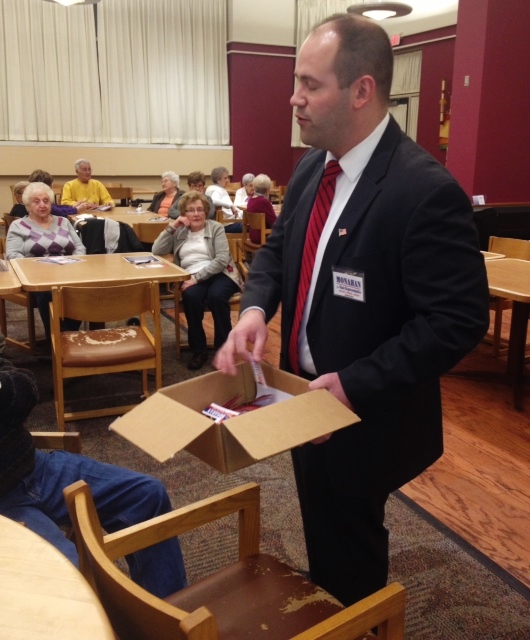 Rosa was ready. “We don’t need this Obamacare,” she said, sounding like a Tea party gal.” (This, said to 150 seniors !) The Vincent supporter grinned — he’d hit the jackpot. But the Forum moderator wasn’t having this battle of the two women. “What,” he asked young candidate Josh Monahan, a Chelsea resident, “is YOUR first priority ?