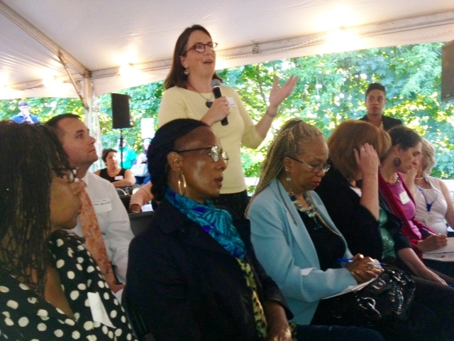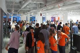 makers of the new Massachusetts economy, and of its politics : SEIU 1199 service workers (top) and (bottom) tech-ies partying at District hall in Boston’s Innovation District