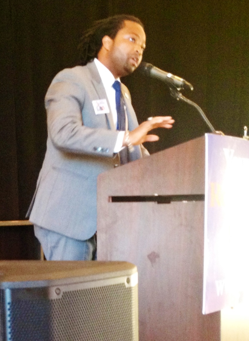 Candidate Eric Esteves spoke reasonably well, too, in his introduction; and he and i have previously discussed the student issue — he ws aware of it before I questioned him. It’s a curious issue for a 7th Suffolk representative. Most people think of the 7th Suffolk as a classic African American district, but it is not that at all. Its population is actually majority Caucasian; but the many voting precincts with almost entirely Caucasian residents have among the lowest voting numbers in the city, as most university students don’t relate to loacl elections. and thus a small but highly political African American community is able, thanks to a favorable districtking map, to have its own representatyive aided by about 20,000 residenhts few of whom vote. i asked this question of Faulk, too : what he did he intend to do about correcting this gerrymander ? He indicated that he would ask to sit on the legislature’s next redistricting committee.