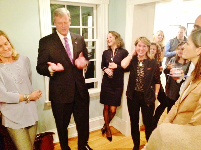 ^ Charlie Baker, his wife Lauren, and running mate Karyn Polito at a new-Boston-ish meet and greet in Charlestown
