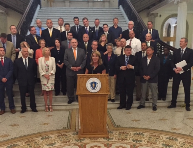 Yesterday Governor Baker and Lieutenant Governor Polito ceremoniously distributed Community Block grants to about 40 Massachusetts municipalities, most of them among the State’s neediest. Distributing the Federally funded grants — averaging $ 710,000 — annually is among the happiest of Baker’s and Polito’s duties; and the event, taking place at the foot of the State House’s Grand Staircase, was the opposite of contentious.