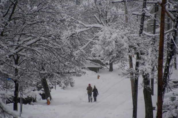 I am in the city with this snow. No partnership there, just the snow, begging, like a Golden retriever hungry, for some loving attention — which it will not get from any of the dozens of drivers hurrying along the salted clear highways and the snow-plowed side streets along which residents are still shoveling and snow-blowing their pathways from there to the job they must go to — because unlike school, jobs rarely send out a “stay home” text. The snow doesn’t know what to do with busy people. It wants attention, which means time out from the busy. It doesn’t get much attention. Perhaps I should give it some ? But I did. I attended to it by shoveling it out of my way. I suppose that was rude of me, but I’m no different from anyone else in the city, a place that’s about work, not snow. Fortunately for the snow, the kids differ. From them the snow can get attention. Kids don’t only love dogs, they love snow. You can’t pet snow, or rub its ears, but you can roll in it and laugh as it hugs you. Woof.