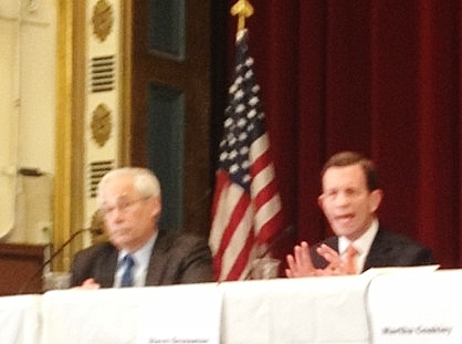 two strongest, but opposites in every way : Don Berwick and Steve Grossman at Lexington’s Governor Forum