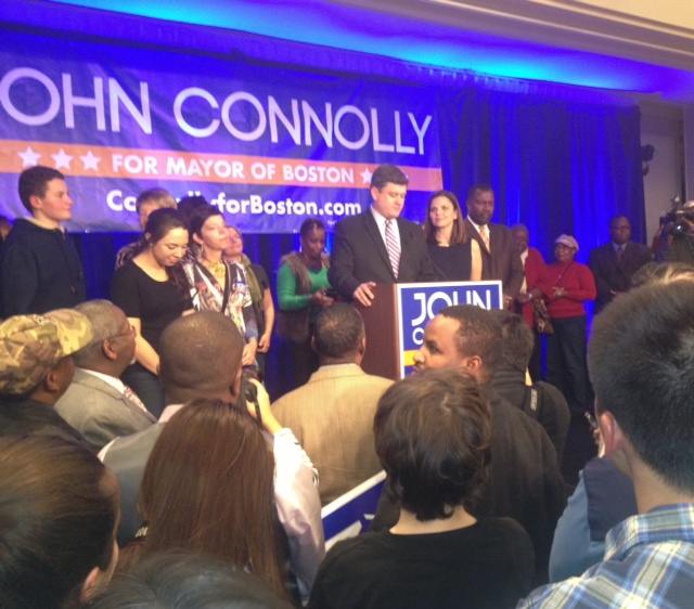 In Charlestown tonight, in the neighborhood where she lives (and, indeed, was given her first job, so she told us) Healey showed her strength on the ground. The event was hosted by Chris Remmes, a classic city progressive who ran for State Representative in a special election this year and drew only about 550 votes. But midway through the event, the man who defeated him, State Representative Dan Ryan, showed up, as did quite a number of Ryan’s Teamster supporters. When Healey began her speech, the Ironside was packed, close to 100 people.