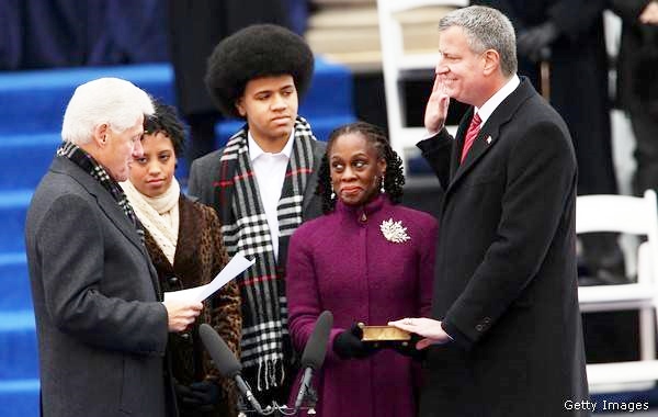 ^ center left pact ? unity in New York as Bill Clinton swears in mayor Bill deBlasio