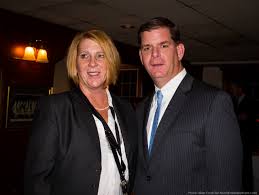 ^ the Lady’s not for trashing : Patty Campatelli on the big stage — with Mayor Walsh